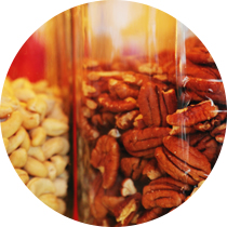 ナッツは血液中の老廃物を排出し、血液の循環をよくします。 これによって、すみずみにまで栄養を運ぶことができ お肌や髪もツヤツヤ、代謝もアップしておなかもすっきり!